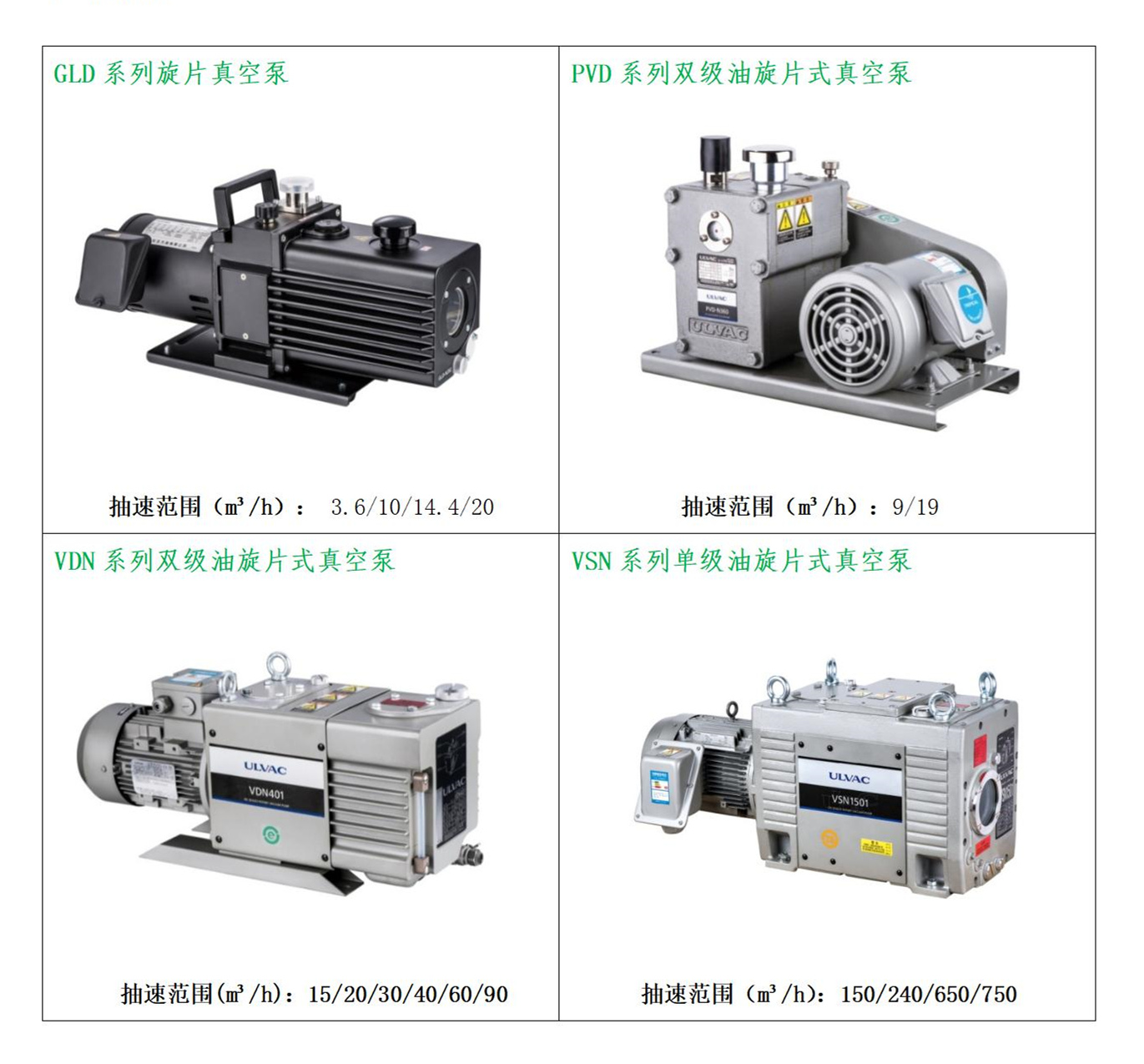 中央空調、照明、制冷;冷媒灌注機、液晶注入機;真空冷凍干燥、真空包裝、真空吸附、搬送;照明理化學實驗,分析儀器;電子顯微鏡的輔助泵,鍍膜、濺射、離子鍍;氣體置換、充填、真空隔熱;真空熱處理爐、燒結爐、釬焊爐;檢漏裝置、真空成形、真空鑄造等。